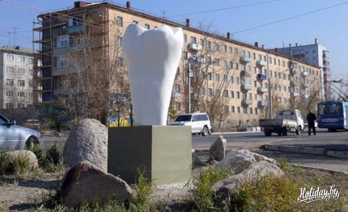 А вот в Чите есть памятник…зубу. Вполне логично, что располагается он рядом со стоматологической клиникой. Какой посыл у этого памятника… Если скажете, что памятник странный – потеряете зубы, может такой…