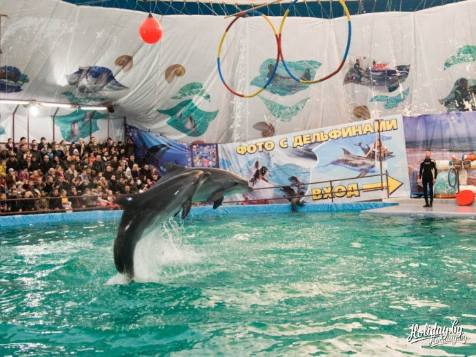 Посетить геленджикский дельфинарий в Минске можно в среду (17:00), четверг (19:00), пятницу (15:00, 17:00, 19:00), в выходные и праздничные дни (11:00, 13:00, 15:00, 17:00 и 19:00). Детки до 5ти лет проходят бесплатно. Кстати, детей ждет небольшой сюрприз – при входе каждый получает «Растишку».