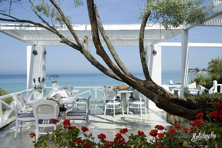 Самую максимальную скидку на проживание 40% предоставляет отель 4+* «Potidea Palace». Он расположен в удивительно живописном месте – на перешейке между двумя заливами, у самого моря, откуда открывается неповторимый панорамный вид на гору Олимп. Здесь гости могут в полной мере насладиться шикарным спа-центром, выбрать для отдыха один из новых номеров-сьютов или провести незабываемый вечер в греческом стиле под сводами величественного Парфенона, точная копия которого воссоздана на территории отеля. Гостей отеля ждет винный погреб «IDEA», где можно попробовать более 1700 сортов великолепных греческих вин. Отель работает по популярной системе «ультра все включено», а кухня включает как традиционные греческие, так и привычные славянские блюда.