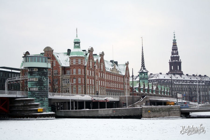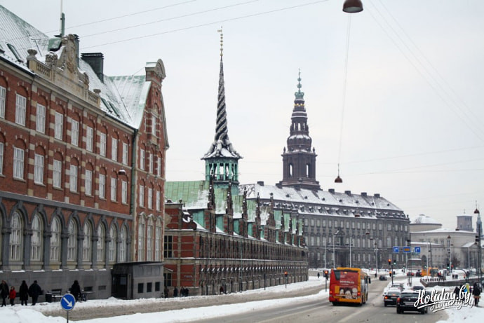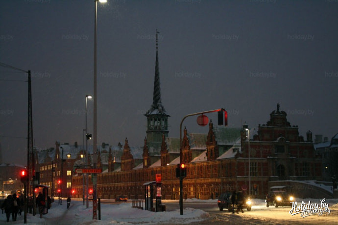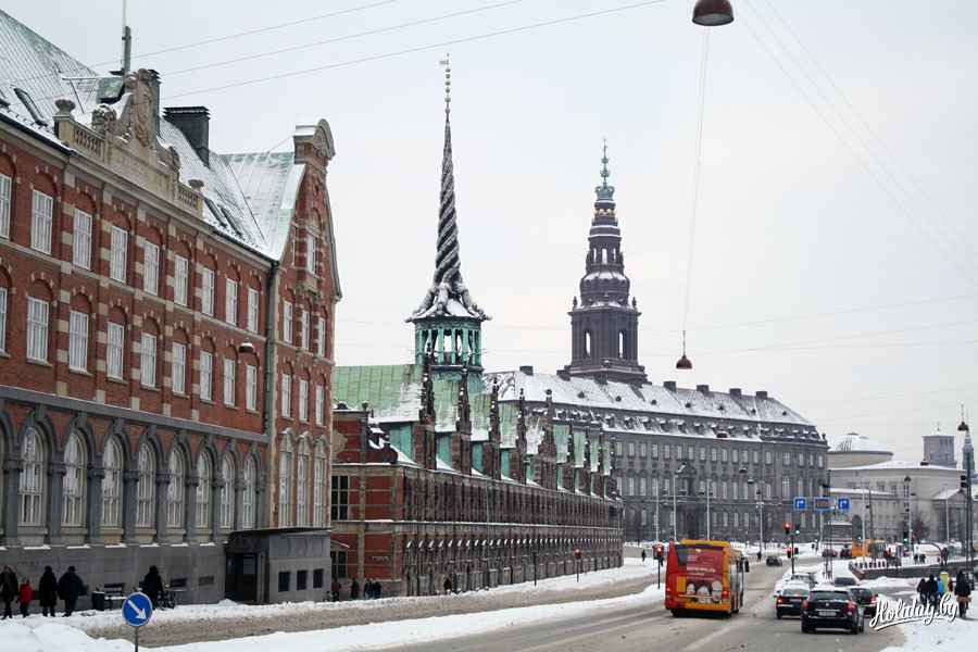 Сразу за Кристианборгом находятся два интересных здания – это Биржа (1620-1640), которую венчает 56-метровый шпиль, свитый из хвостов драконов.