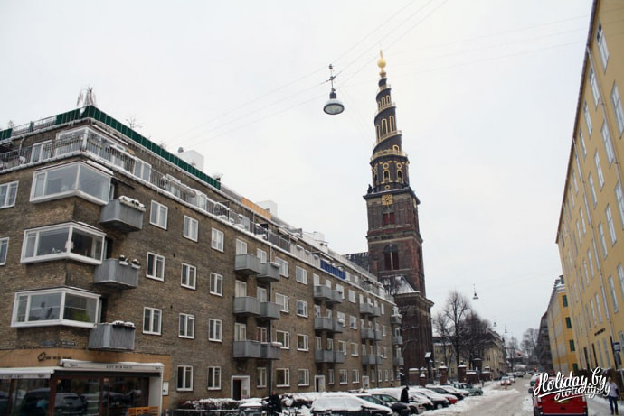 ..и Церковь Спасителя (Vor Frelsers Kirke). Летом необычный спиральный шпиль используется в качестве обзорной площадки.