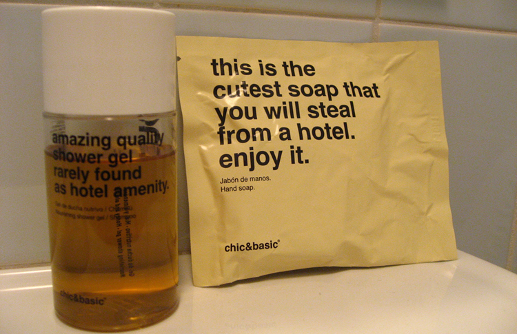 Некоторые отели сделали хитрый ход, направленный на совесть их гостей. Теперь на самых похищаемых вещах и предметах написаны соответственные реплики. К примеру, на полотенцах «Я не крал полотенце из отеля», а на пепельницах «Украдена с комплиментами от отеля».
