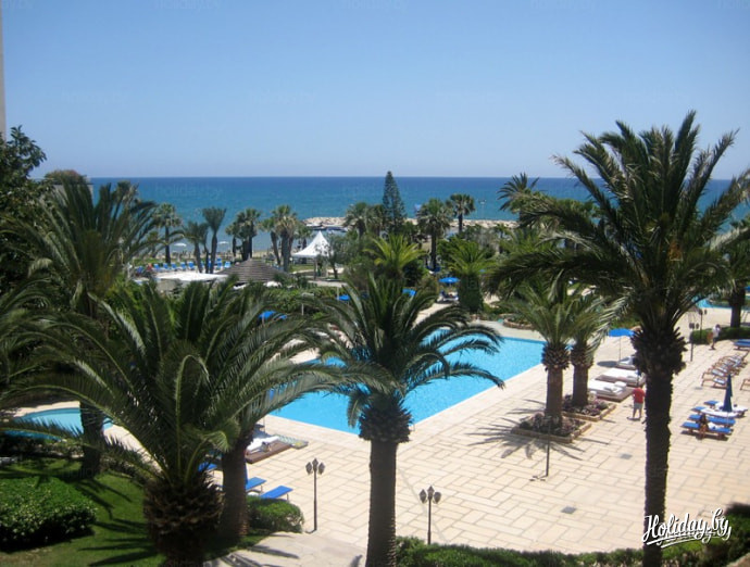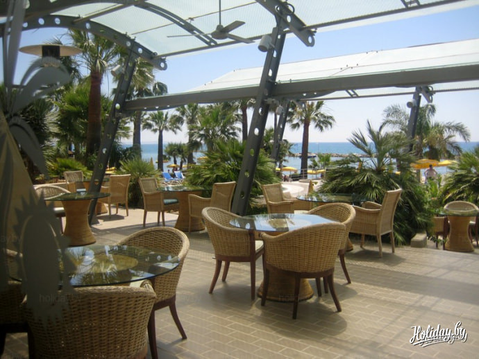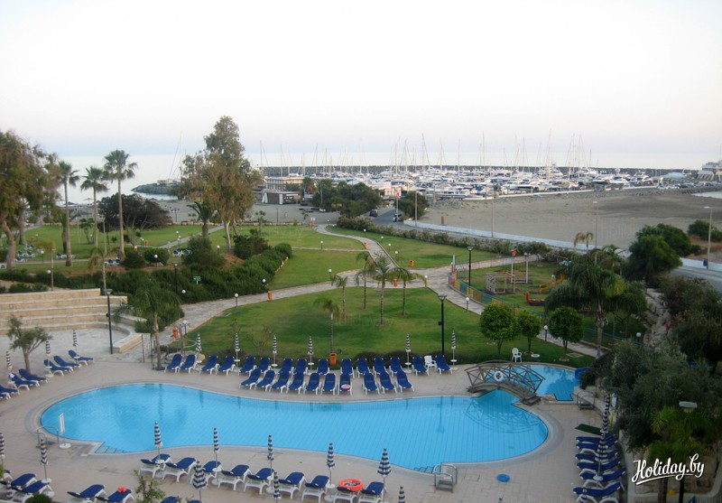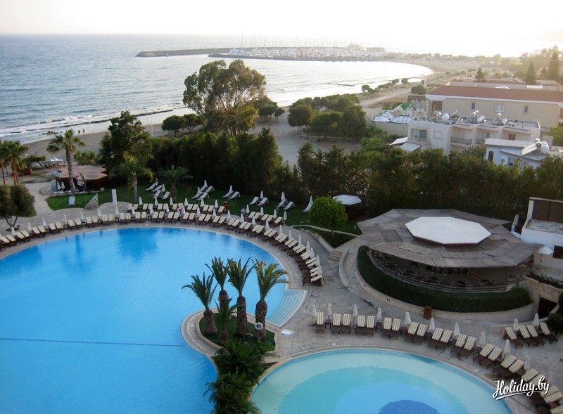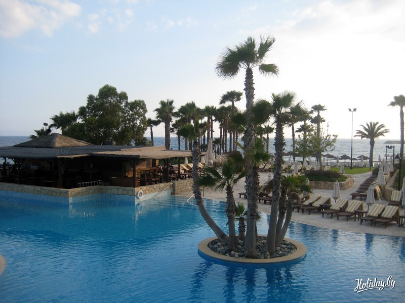 Этот отель расположен в 14 км от центра Лимасола, до которого можно добраться на автобусе. Что мне лично здесь понравилось? ВСЕ! Территория, номера, огромные зеркала в ванной, халаты, пляж, бассейны, еда… В отеле есть развлекательные программы, живая музыка, представления для детей. Действительно 5*!