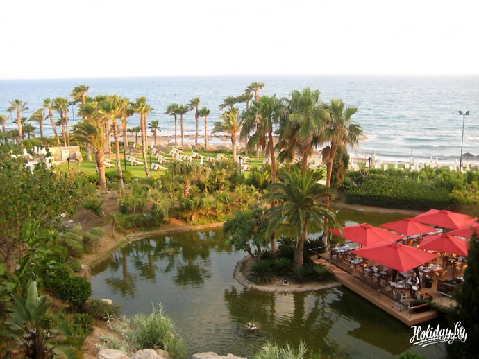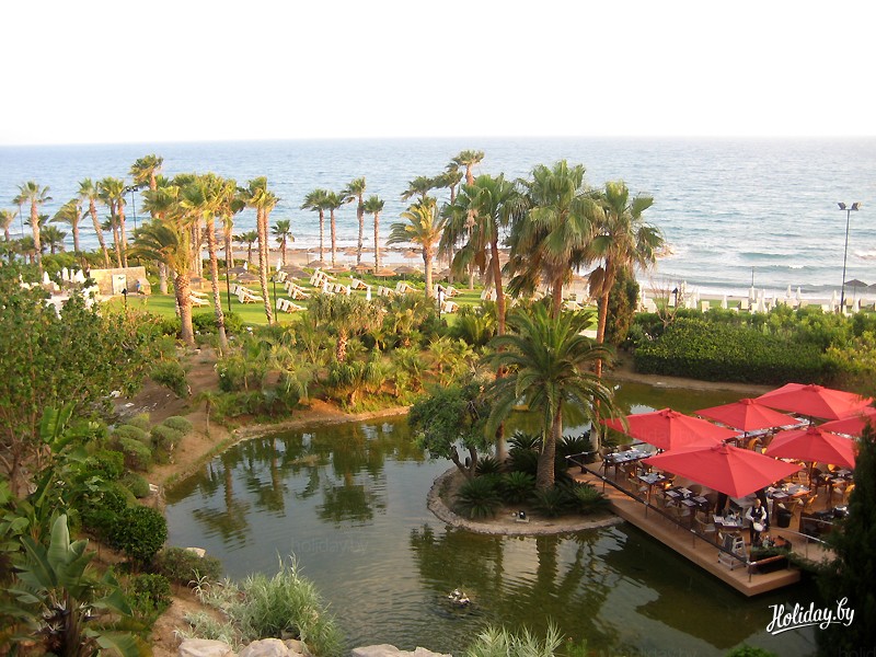 Еще один отель не в центре - Le Meredien, 5*. Наверное, эта сеть многим знакома. Я такой отель увидела впервые. Он полностью оправдывает причастность к международной сети и все свои многочисленные награды. Что я могу сказать? Уау!!! Я лично не отношусь к туристам, которые безвылазно сидят в отелях весь отпуск. Но я могла бы сделать такое исключение, если бы это был Le Meredien. Такое количество услуг, такое количество возможностей отдыха! Много зелени, 15 бассейнов, рестораны и бары Кипра, ночной клуб, спа, магазины… В этот отель часто приезжают с концертами российские и не только звезды. А для тех, кто едет с детками, это просто рай. Детьми там могут заниматься весь день, и это будете не вы )))) С малышами до трех лет могут возиться няни. Отель является закрытым, посторонних на его территории не бывает.