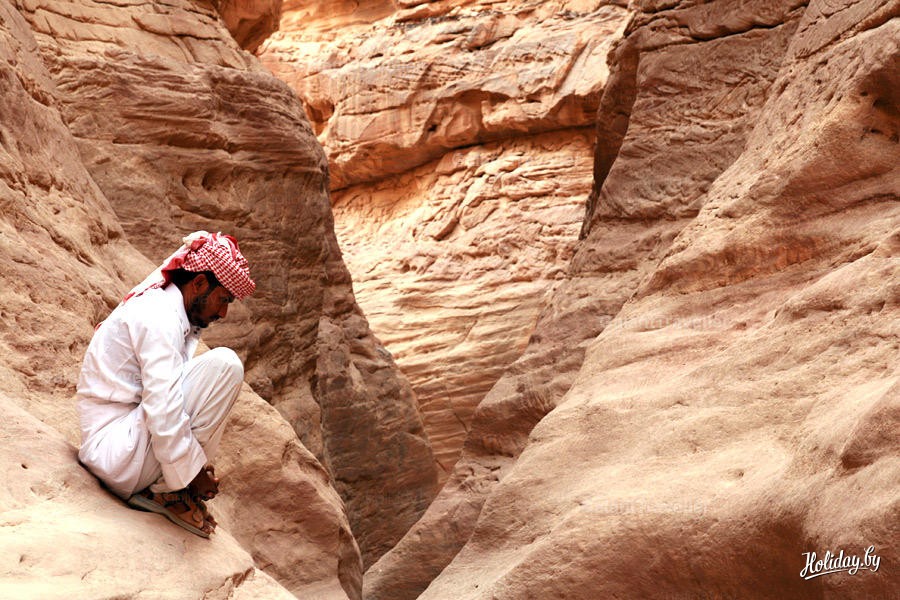 За тонким ручейком далеко нетонких туристов спокойно наблюдают проводники-бедуины. Эти хоть больше похожи на кочевников - поджарые, тихие, но с очень цепким взглядом.