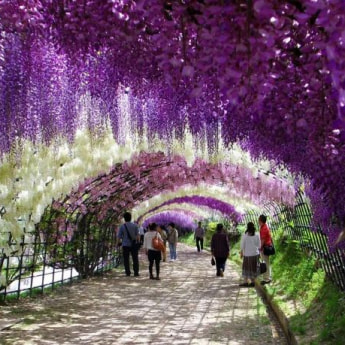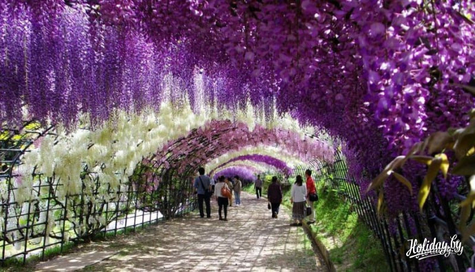 Совсем скоро наступит лучшее время для посещения тоннеля глициний в японском саду цветов Кавати Фудзи. Городок Китакюшу, расположенный всего в 4-х часах езды от Токио, ассоциируется у знатоков именно своим красочным садом, одной из самых впечатляющих частей которого является Тоннель Вистерия. Приблизительно в середине мая сад полностью готов поражать своих гостей. Так что, если есть возможности, купить тур в Японию стоит настоящим ценителям прекрасного.