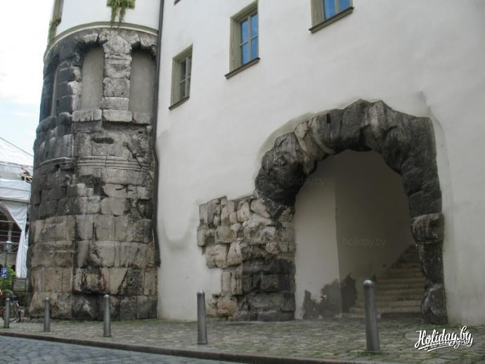 179 год нашей эры. Могущественная Римская империя, под властью которой живет более четверти населения земли, ведет войну с германскими племенами на берегах Дуная с целью создать новые римские провинции. Именно так начинается фильм «Гладиатор», а действие происходит примерно там, где сейчас находится Регенсбург. Именно здесь была штаб-квартира римского императора Марка Аврелия, который с окончанием военных действий распорядился о сооружении здесь лагеря римских легионеров - Castra Regina. По данным историков, здесь находился 3-й Италийский легион, насчитывающий около 6 тысяч воинов. Сам лагерь был окружен стеной высотой примерно 10 м, имел четверо ворот и многочисленные башни. К сожалению, время безжалостно и до сегодняшних дней сохранились только ворота «Порта Претория» - древнейшее сооружение на территории Германии.