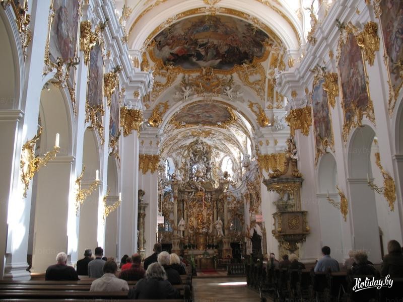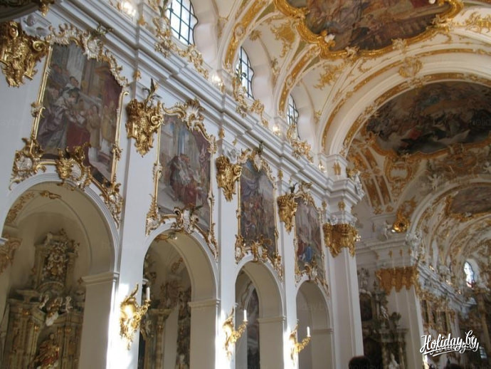 Но стоит зайти внутрь - и вы окажетесь совсем в другом мире Рококо. Насколько разительно он отличается от привычно сдержанного стиля иных храмов.