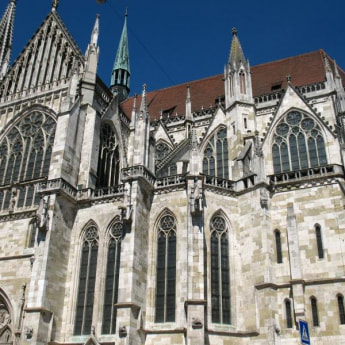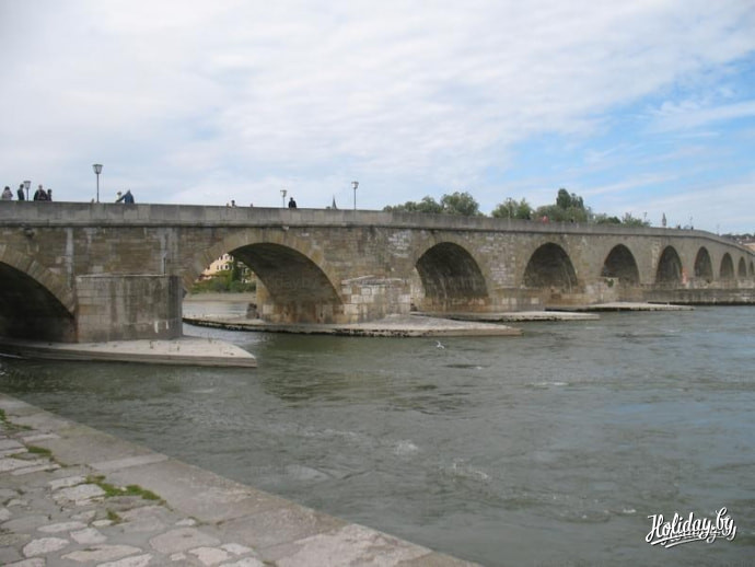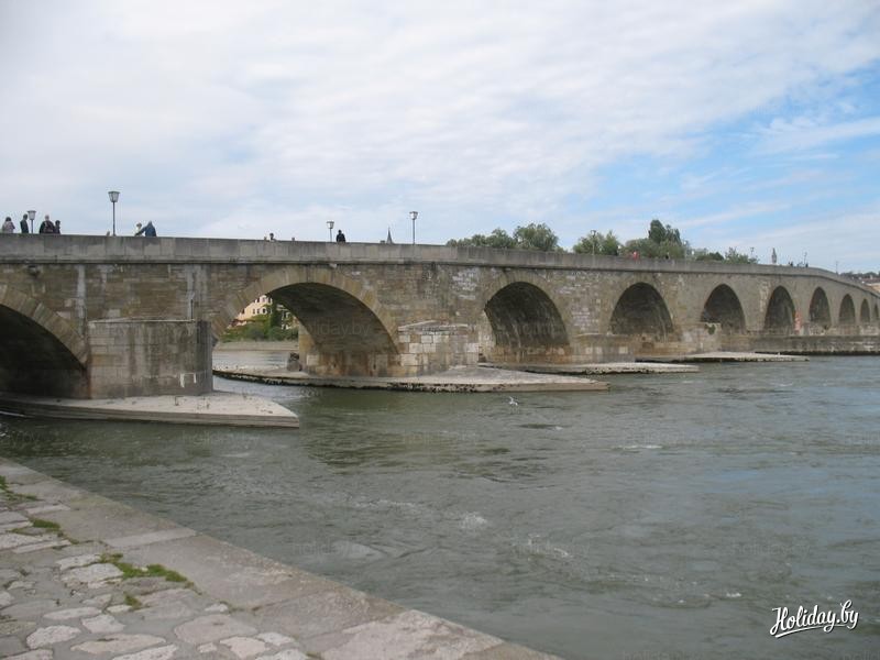 К 12 веку Регенсбург один из красивейших и богатых городов Германии. В те времена через Регенсбург пролегал путь из Западной Европы в Константинополь. Купцы сплавлялись вниз по течению до Черного моря, откуда плыли в столицу Византии. Важным символом благосостояния того времени стал каменный мост - Steinerne Brücke. Это ваш старый знакомый - вспомнили? Ведь именно по этому проекту спустя 200 лет был построен Карлов мост в Праге. Steinerne Brücke - самый старый мост, сохранившийся на территории Германии. Его длина - 300 метров и в средние века он считался чудом инженерной мысли. Мост строился по указу Людовика VII для форсирования Дуная участниками второго крестового похода.