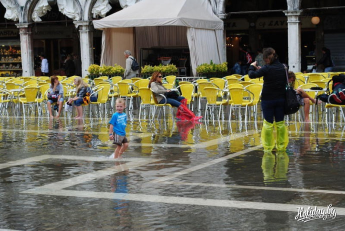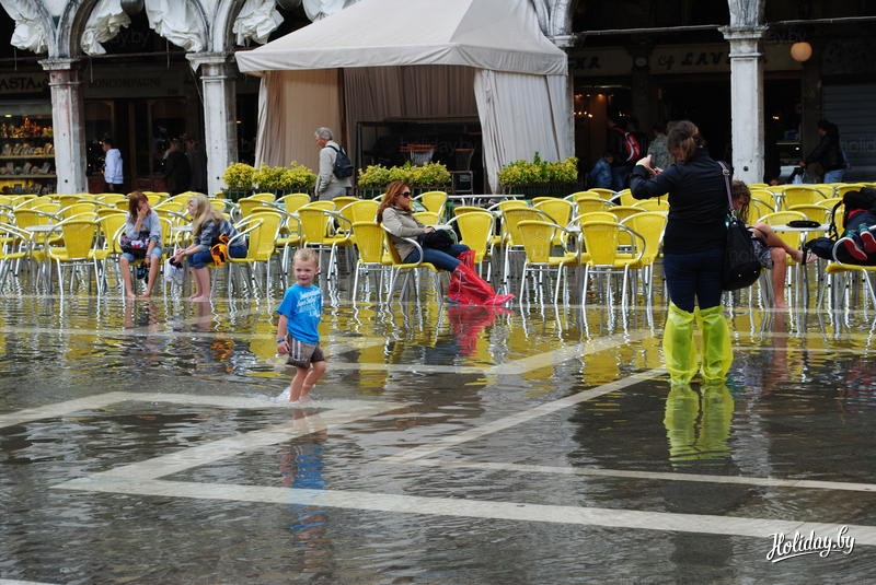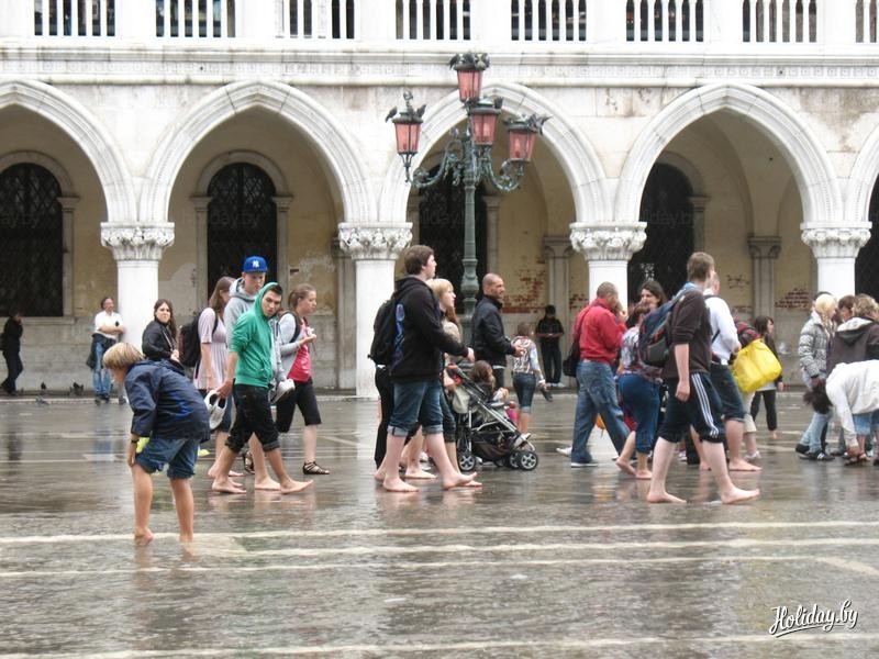 Как оказалось, опасения наши были совершенно напрасны - по краю площади можно было пройти без проблем, а сами венецианцы знают время таких приливов и отливов почти до минуты.