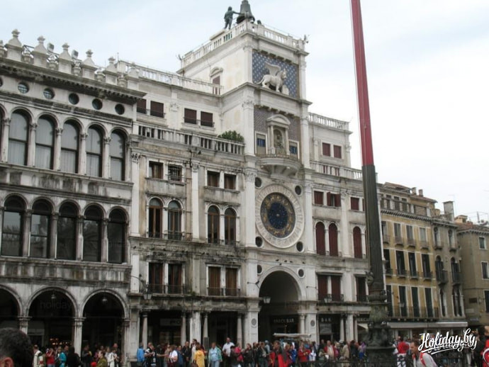 Короткое вступление гида и мы ныряем через ворота часовой башни в узкие улочки Венеции.
