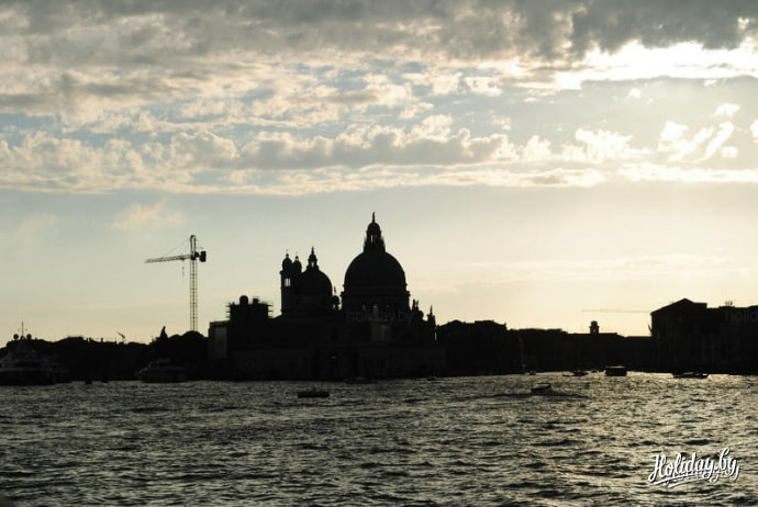 И даже солнце напоследок решило нам улыбнуться, превратив исчезающую на горизонте Венецию в грубый рисунок на холсте темного неба