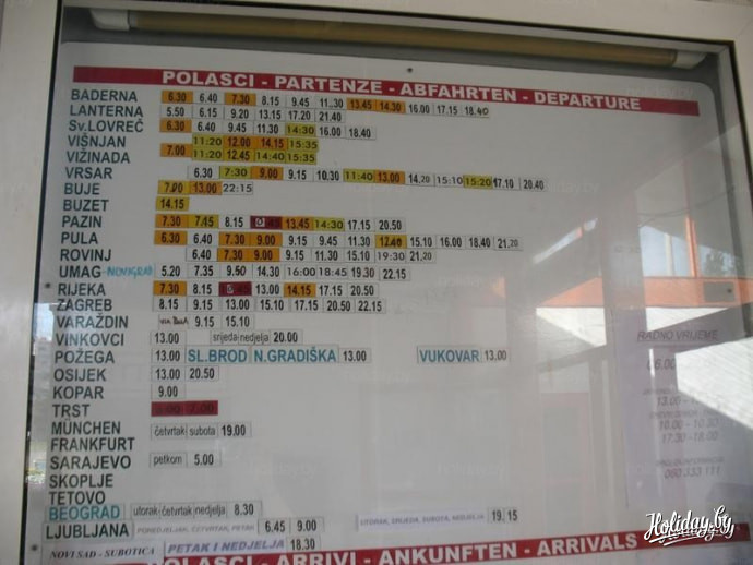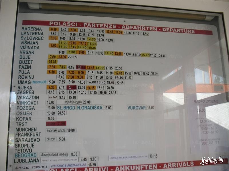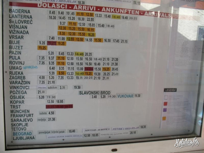 К 18:00 я наконец был дома. Спасительный душ придал сил, а ужин совсем их восстановил. Но ноги на следующий день были в состоянии дойти только до пляжа. Вернувшись домой, я по Гугл-картам посчитал длину своего маршрута - оказалось 40 километров. Я считаю - это подвиг. Вот так и прошел мой пятый день в Хорватии. И были в нем алые паруса, черт побери и самые вкусные в жизни мандарины. Тем, кто не готов на такие подвиги, а также всем остальным, кто не боится самостоятельных путешествий, привожу расписание автобусов по автостанции