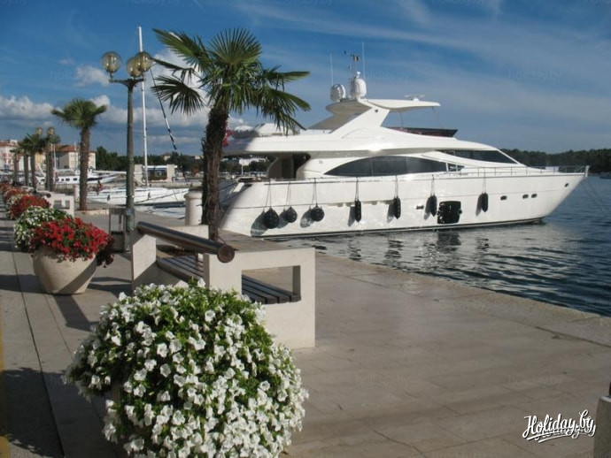 Впрочем, небольшое ожидание нисколько не напрягает – у вас будет время осмотреть территорию отеля, купить телефонную карточку (если она вам нужна), сходить на море, посидеть в кафе. При большом желании вы даже можете сходить в Пореч, но торопиться не стоит – привыкайте к размеренной курортной жизни и не портите спешкой первое впечатление от знакомства с городом. А в качестве компенсации за ожидание, менеджер отеля предложит вам вкусное хорватское вино в качестве Velcom drink.