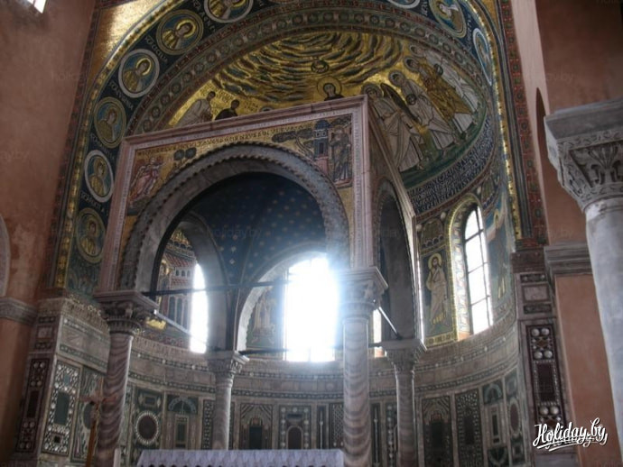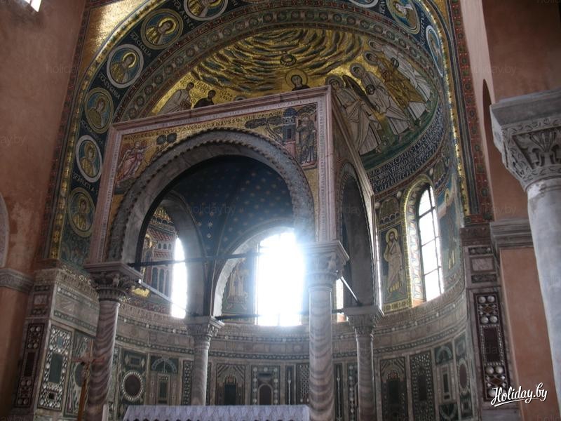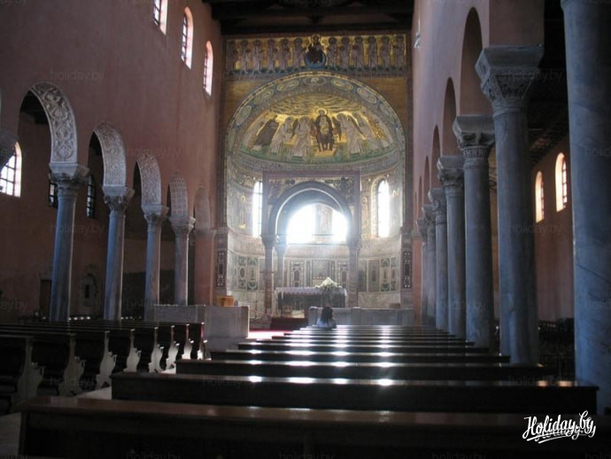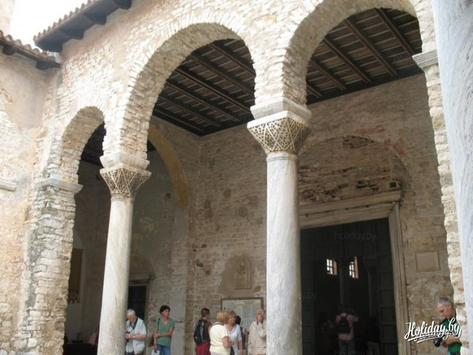 Стремясь сохранить имя в веках, епископ Евфразий потребовал выбить свои инициалы на всех видных местах базилики, а также изобразить себя на одной из мозаик апсиды центрального нефа рядом со святым Мавром. За нарушение строгих религиозных норм и проявление нарциссизма епископ был проклят Папой римским и отлучен от церкви. Однако благодаря усилиям этого великого человека маленький Пореч превратился из заурядного провинциального позднеантичного поселения в процветающий город.