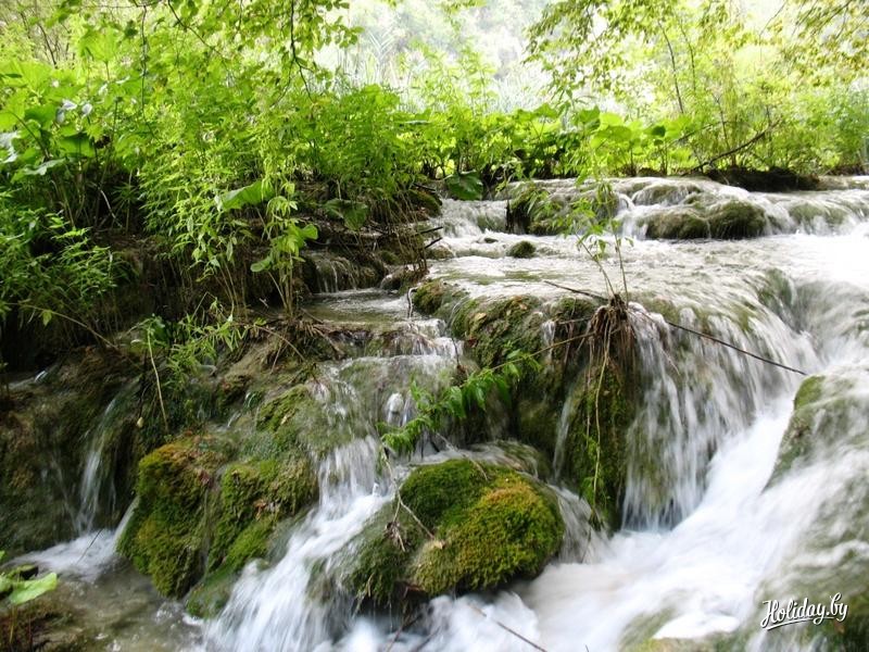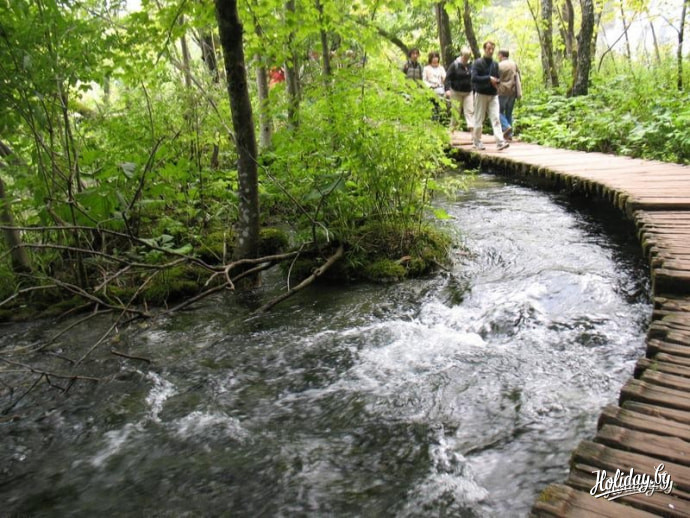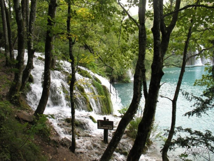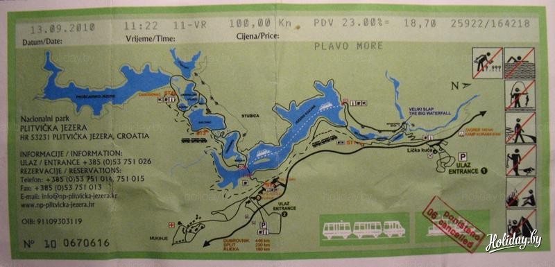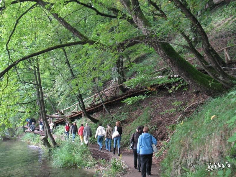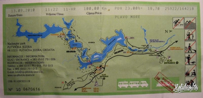 Ну а я, выбирая экскурсии, решил последовать совету - "Кто не был на Плитвицких озерах - тот не был в Хорватии".Экскурсия эта - самая дорогая по стоимости и стоит 600 кун, или 80 евро. Дороговато, конечно, но оно того стоит. Группа подбирается только русскоязычная. По времени экскурсия рассчитана на целый день. Выезд - в 7:00 утра т.е. завтрак вы пропускаете. Поэтому необходимо с вечера попросить у администратора подготовить вам ланч-пакет. Конечно, корзинку разносолов вам с собой не соберут, но на пару бутербродов и сок можете рассчитывать. Путь от Пореча до Плитвиц занимает 5 часов с одной остановкой на перекус. За это время вы проедете почти через всю Хорватию в самый ее центр. Издалека увидите остров Крка, проедете через курортный город Риека. Промчитесь по самому длинному в Хорватии туннелю под горой Учка (Волчица). Его длина составляет более 5 километров. Желающим предлагают загадать желание - если вы сможете задержать дыхание на то время, пока будете ехать через тоннель, то оно обязательно сбудется. И вот наконец, в 12 часов дня мы прибыли на Плитвицы.
