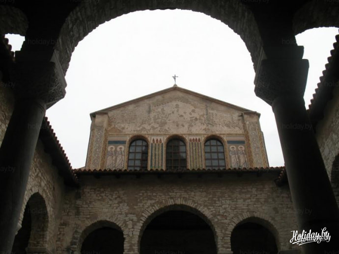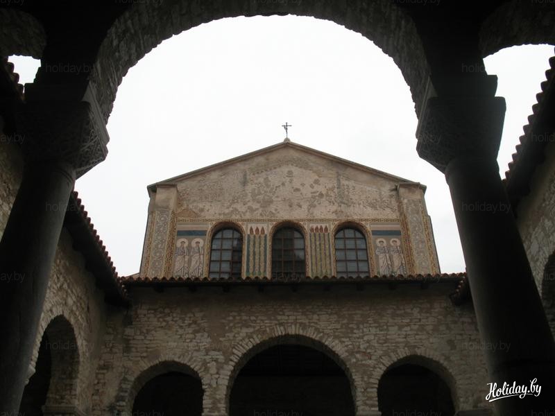 Базилика - настоящая жемчужина Пореча, которой город обязан своим процветанием. Ведь изначально Пореч представлял собой маленький провинциальный городок на периферии умирающей Римской империи. Император Юстиниан, пытаясь восстановить территориальную и политическую целостность империи, а также возродить блеск античного искусства, поручил епископу Евфразию возвести новый кафедральный комплекс в отдаленной римской провинции. В то время в Порече уже существовала одна из древнейших епархий на Адриатике. Энергичный и амбициозный епископ, воспитанный на роскоши Востока, построил новый храм на месте старой полуразрушенной часовни святого Мавра и привнес в строительство храма много архитектурных и художественных инноваций, в то время не известных Западу. Для выполнения своих замыслов, Евфразий привез с собой лучших византийских мастеров.