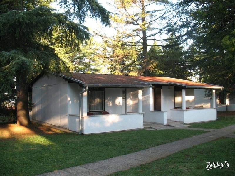 Бунгало находятся в парке из пиниевых сосен. В каждом бунгало 4 номера. Номера небольшие. В номере - двуспальная кровать, телевизор, шкаф-купе, санузел. Мебель не очень новая, но находится в полном порядке. В санузле есть все необходимые принадлежности, фен. Холодильника и кондиционера в номере не было, но насколько я понял, номера несколько отличаются друг от друга, поэтому за все говорить не буду. У каждого номера есть собственная небольшая веранда. На веранде - стол, стулья, раскладная сушилка. Благодаря тому, что бунгало находятся в тени сосен и наличию жалюзи на окнах в номере никогда не было жарко. Поэтому от отсутствия кондиционера я не страдал.