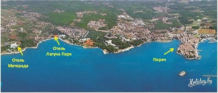 Отель расположен очень удобно - недалеко от Пореча и почти на самом краю туристической зоны северной части побережья Пореча. Дальше него находится только отель Матерада.