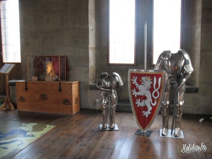 Карабкаясь вверх по узким коридорам с высокими ступеньками, можно сделать перерыв и сфотографироваться в рыцарских латах