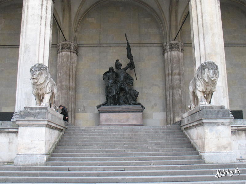 Любопытство требовало поскорее идти дальше, но с моей стороны будет невежливо уйти, не сказав несколько слов о Максимилиане 1. Чем же он известен, кроме того, что он король? Император священной римской империи, доблестный рыцарь - Максимилиан был высокообразованным и весьма разносторонним человеком. Помимо выдающейся физической силы, он обладал обширными знаниями и умениями в разных областях искусства и науки, не гнушался ремесел. Максимилиан свободно владел латинским, немецким, французским, итальянским, английским и чешским языками. Ну а кроме того, Максимилиан стал первым императором, который не был коронован Папой римским. Прецедент был создан и в дальнейшем его преемники уже не стремились к коронации у папы Римского. Избрание германского короля курфюрстами уже делало его императором. Вот теперь можем идти дальше на площадь Одеонплац. Тем более, что впереди нас ждет очень важное дело. Помните, что является символом королевской власти, достоинства, благородства, успеха и богатства? Конечно же лев. Поэтому по дороге не забудьте потереть морды четырем львам. Королями не станете, а богаче - обязательно.
