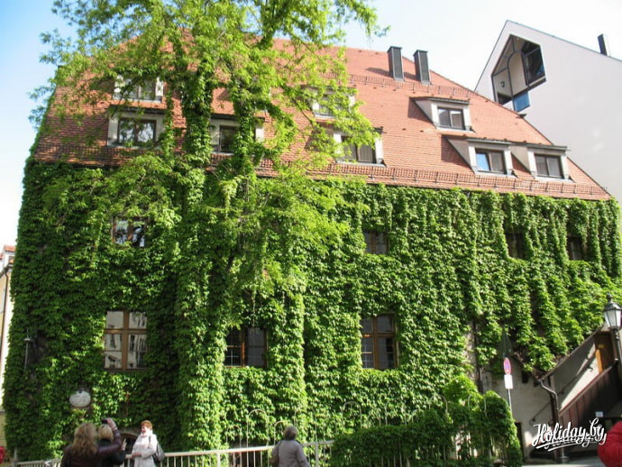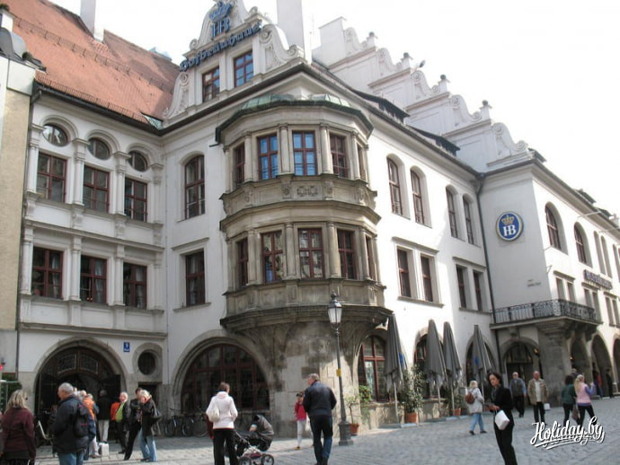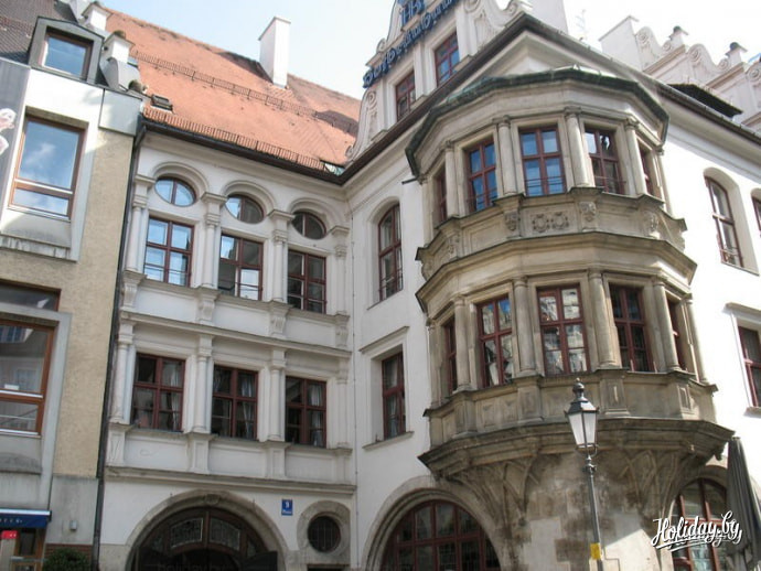 А стандарт емкости для пива у баварцев не маленький бокал и не пол-литра. Полновесный литр - вот настоящий размер. Или по баварски - масс. В этом вы можете убедиться всего лишь взглянув на фасад Хофбройхауса. Разве эркер здания не похож на пивную кружку?