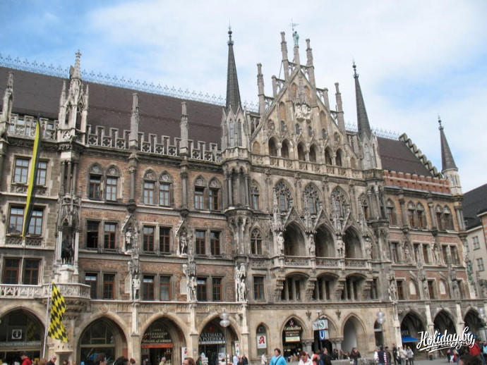 Ну и конечно же, одно из самых эффектных зданий Мюнхена, построенное в стиле неоготики в 19 веке - здание Новой ратуши на площади Мариенпалц.