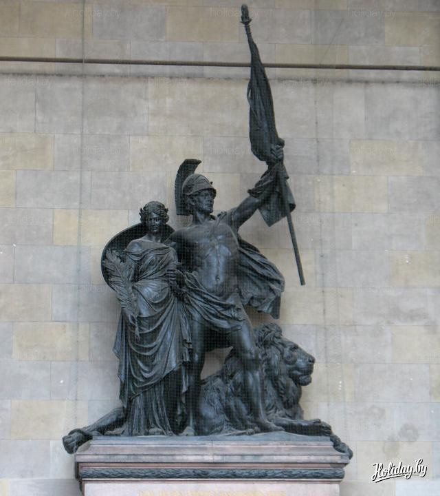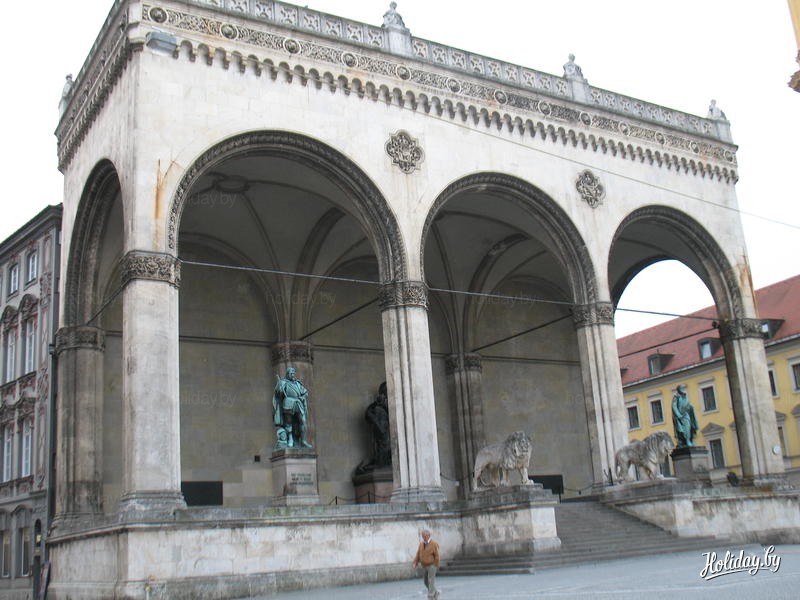Аркада была построена по приказу короля Баварии Людвига I и должна была служить началом улицы Людвигштрассе, которую планировалось протянуть через весь город. В нише зала установлены бронзовые памятники в честь баварских полководцев,