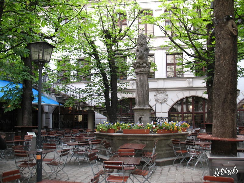 Уходя, не забудьте заглянуть в пивной сад Хофбройхауса. Вообще в этой пивной несколько залов, которые вмещают массу народа. Но один из самых приятных конечно же пивной сад.