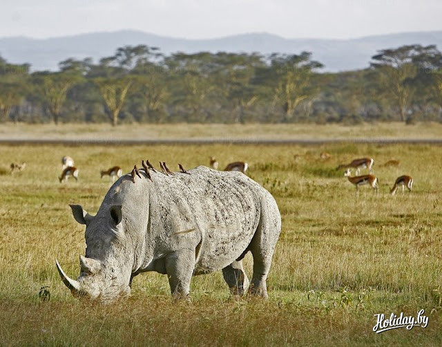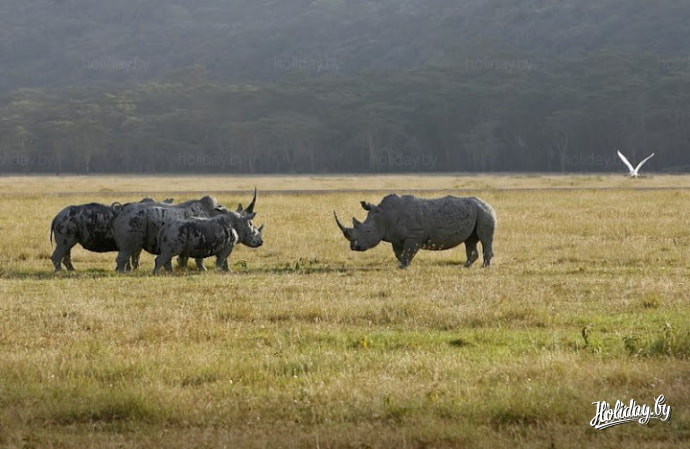 Но на фоне фламинго все остальные как-то теряются. Из крупных млекопитающих здесь много белых и черных носорогов. Накуру – одно из немногих мест, где их можно увидеть целыми семьями. На площади всего в 200 квадратных километров сейчас обитает более 70 животных, находящихся под угрозой исчезновения. В других парках Кении носорога не найдешь.