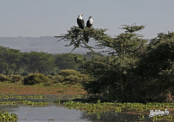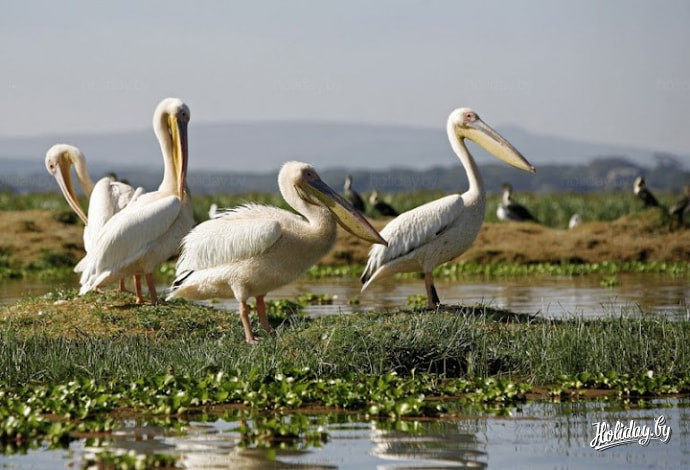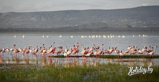 Из многочисленных кенийских природных парков, ради которых в страну приезжают любители фотосафари, выделяется парк «Лейк-Накуру». Во-первых, здесь находится озеро Накуру. Оно напоминает огромную выставку птиц - более миллиона розовых фламинго слетаются на озеро, чтобы отведать рыбу особого качества. Вот где действительно – жизнь в розовом цвете. Розовые птицы отражаются в розовой воде, как будто накрывая озеро розовым покрывалом. Розовое небо, в котором отражается озеро, сливается с ним где-то за розовым горизонтом. Воздух над водой дрожит от постоянного гогота и кряканья птиц. Помимо фламинго на озере много других пернатых: пеликаны, марабу, аисты.