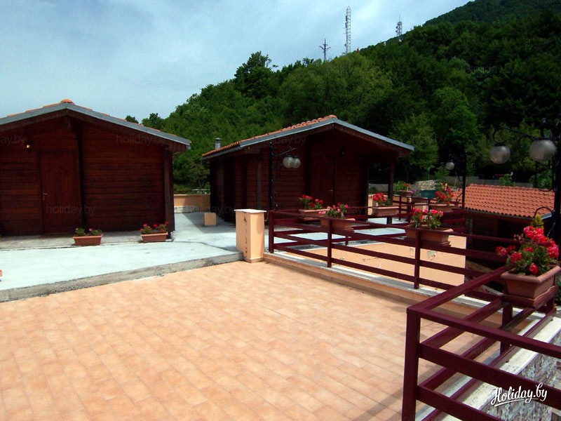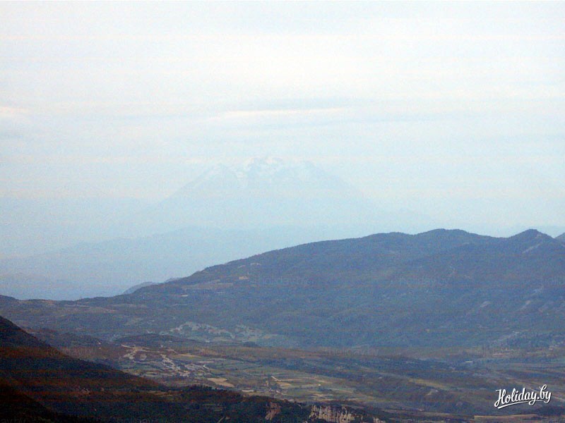 Отвлеклись немного. Сразу за зданием канатки в горах сооружена панорамная площадка, пока что вторая по счету. На первой же построен современный кемпинг или, скорее, пансион, под названием «Панорама». Туда ходят абсолютно бесплатные микроавтобусы, хотя можно пройти и пешком. Пансион состоит из чудесного ресторана, нескольких домиков для пока нечастых постояльцев и огромной обзорной площадки, с которой видны: вся Тирана, Дуррес с заливом, окрестности Круи на севере и величественная гора Томори на юге. В тот день она была в дымке, поэтому на фотографии не вполне получилась, хотя ее снежная шапка на фоне июньской жары выглядит особенно величественно.