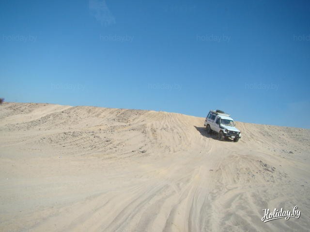 Еще одну экскурсию я покупал тоже на целый день – «Белое солнце пустыни» (60$). Сначала нас покатали по пустыне на джипах, хотя покатали – мягко сказано. Водитель носился по склонам вверх и вниз как Шумахер, так что адреналина все получили немало.