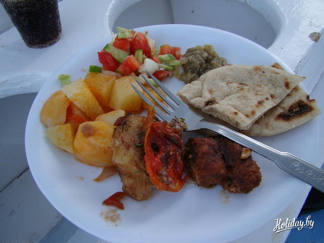 Уставших и довольных, на катере нас ждал обед. После шведских столов в отеле всем он показался сразу жиденьким…Но все было вкусно, всем желающим щедро предоставлялась добавка. Так что обед на свежем воздухе в море прошел удачно.