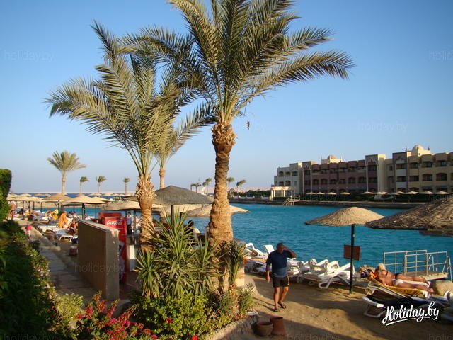 Территория отеля зеленая, много цветущих растений. Зонтики, шезлонги, матрасы на пляже и у бассейна - бесплатно. На пляже имеется три бара, плюс бар у бассейна.