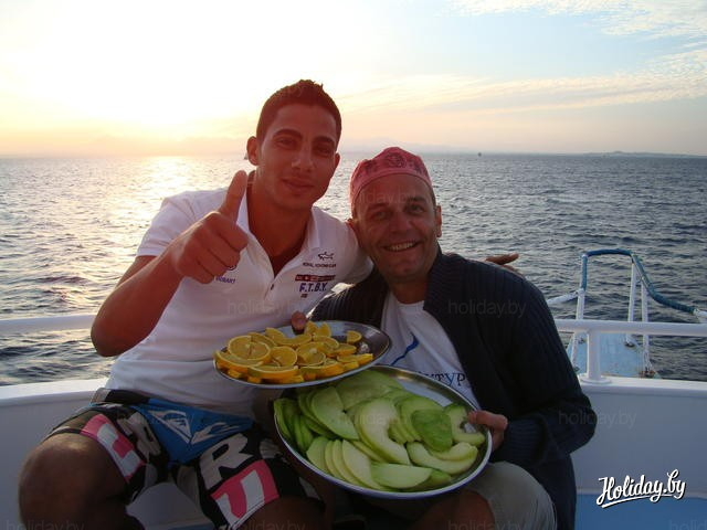 Советую съездить на морскую прогулку со встречей заката в море (целый день, у ТЕЗтура она стоит 30 долларов). Утром вас забирают из отеля (возьмите только с собой пляжное полотенце) и отвозят на небольшой двухпалубный катер.