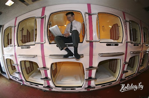 Заселяясь в японский отель–капсулу важно быть уверенным, что клаустрофобии у вас нет, и стены на психику не давят. Номер в таком отеле представляет собой капсулу из пластика, в которой есть все, к чему привык человек: wi-fi, телевизор, радио, свет, достаточно удобная постель, но вот прогуляться по комнате и посмотреть на вид из окна не получится, т.к. номер – это двухметровая постель, рассчитанная на одного человека. Самое интересное, что недостатка клиентов отель в Японии не испытывает.