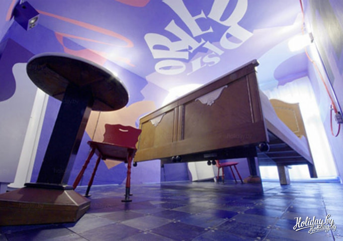 Конечно, такой потрясающий и «по уши» творческий город просто обязан иметь необычный отель. Пожалуйста, Propeller Island City Lodge. Как утверждают владельцы отеля, здесь каждый найдет комнату на свой вкус и цвет. В одном номере все стены разукрашены в безумно-оранжевый цвет, в другом кровать висит под потолком, в третьем смогут жить люди только с хорошим вестибулярным аппаратом, т.к. в номер полностью состоит из зеркал, а хотите – спите в гробу. В общем, комнат огромное количество и ни одна не повторяется.