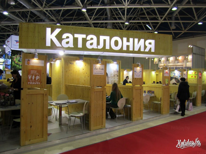 На второй день не удержался и сделал кадр стенда Каталонии (автономной области в Испании). Просто понял, почему. Он просто из досок :)