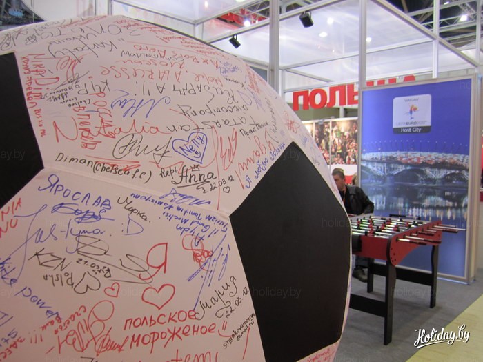 Поляки то и дело зазывали то мяч пнуть, то расписаться на нём, то сыграть партию в настольный футбол. От желающих не было отбоя.