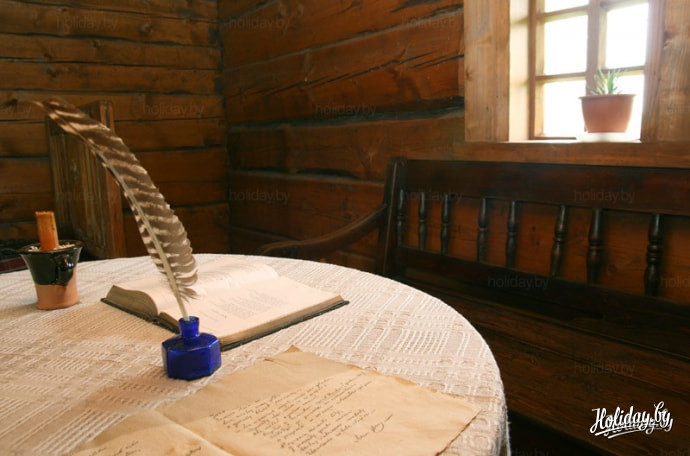 Всемирно известный поэт родился здесь 24 декабря 1798 года. Как пишут в сухих энциклопедических справках: "польский поэт, политический публицист, деятель национально-освободительного движения; считается одним из трех величайших польских поэтов эпохи Романтизма (наряду с Юлиушем Словацким и Зигмунтом Красинским). Оказал большое влияние на становление польской и белорусской литературы в XIX в". Из земель, где пожил Мицкевич в Новогрудке насыпан мемориальный курган. В честь Мицкевича назван даже кратер на Меркурии. Ну да хватит космоса Интересующийся с легкостью найдет произведения пера Адама, мы же возвращаемся в усадьбу, которая сегодня не столько место на карте, сколько - литературный и художественный образ. Вся та обстановка, которая воссоздана сегодня в Заосье - это попытка по произведениям Мицкевича ("Пан Тадеуш"), по изображениям (рисунки Е. Павловича, Наполеона Орды, Андриоли) воссоздать дух эпохи. Емко звучит название всей экспозиции - "Вяртанне пана Тадэвуша" ("Возвращение пана Тадеуша")