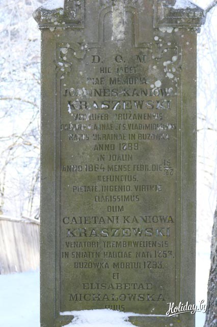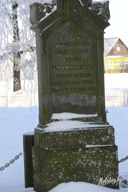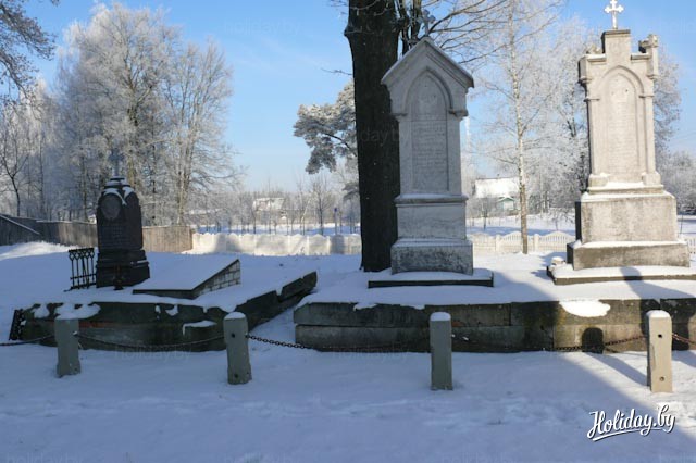 За костелом находятся усыпальницы – тоже настоящее произведение искусств. Местные говорят, что лет 40-50 назад дети попадали через эти усыпальницы прямо в костел, тащили оттуда книги ещё что-то, потом просто играли с этим. Теперь, конечно, ничего не найти. Говорят, там были похоронены основатели костела, правда, точно я не знаю, к сожалению.