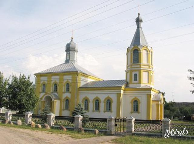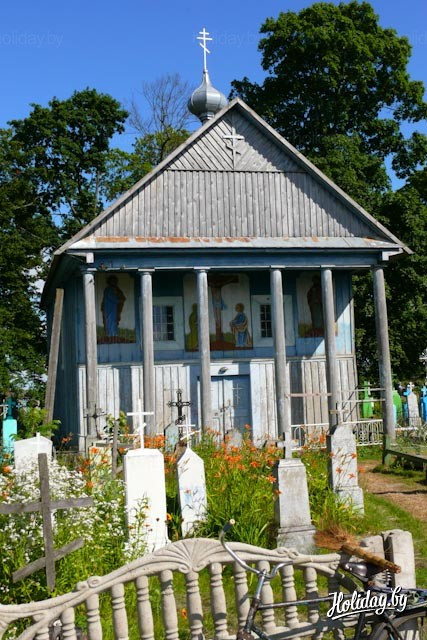 Церковь находится на окраине поселка посреди старинного, но действующего кладбища, которое, кстати, само по себе достаточно оригинально. Здесь похоронен известный белорусский славист Бобровский.