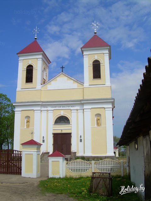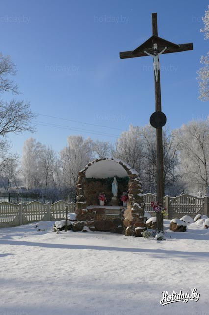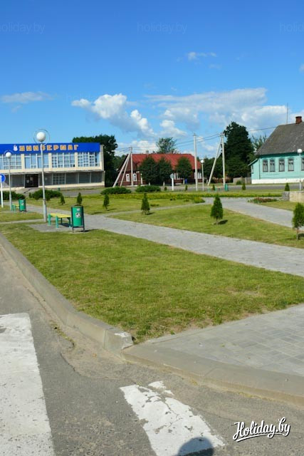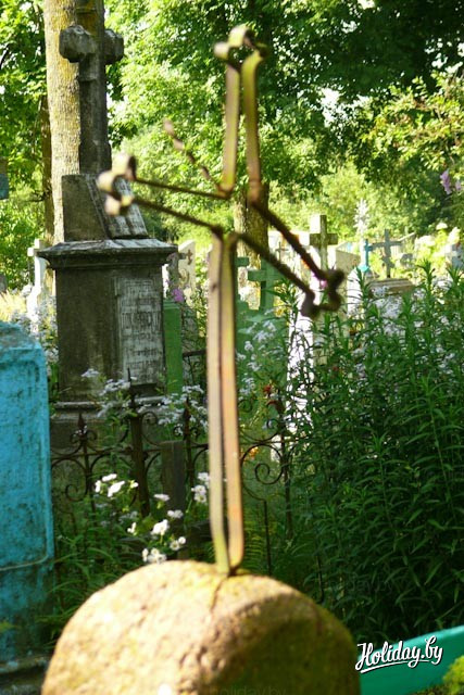 Второе, поселок немолодой, - архитектурное и историческое наследие в большинстве своем сохранилось. Итак, на первом же перекрестке находится церковь Св. Николая 19 века и Троицкий костел со старым кладбищем – невероятно красивый. Интересно, что находятся они в непосредственной близости друг от друга, практически в одном дворе)) Их разделяет лишь небольшой стандартный магазинчик советского периода – поистине трогательный образ)) В итоге получается, что задний дворик магазина, где разгружается товар находится как раз на территории главного входа в костел – вот такая нелепица. Хотя, местные конечно привыкли и это уже никого не смущает, напротив иногда очень удобно по пути из костела купить булку хлеба по дороге