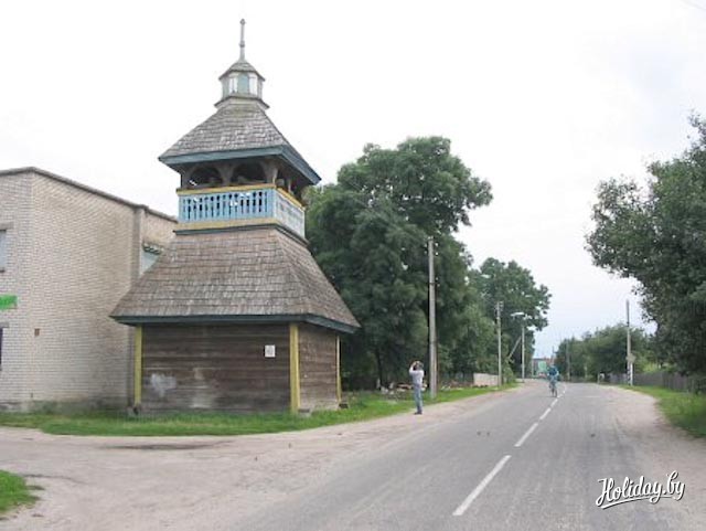 Сразу на выезде/выходе из центра поселка – главная достопримечательность – памятник деревянного зодчества 1799 года – звонница в формах архитектуры барокко. Вообще в Шерешево во многих постройках можно проследить лаконичность решения архитектуры. Звонница – прямое тому подтверждение – минимум декоративных элементов – в общем, просто но со вкусом)))) Ну и, конечно, не могу не отметить контрастность современной деревни. Звонница стоит в непосредственном соседстве с домом быта – серым безликим зданием, похожим на коробку. Но, конечно, где-то далеко в голове, я понимаю, что бытовые услуги, оказываемые населению гораздо важнее любованию историческими объектами редких заезжих туристов.