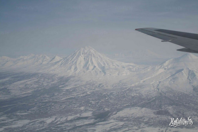 Красненькая полоска на экране, показывающая наш маршрут, подползала к Камчатке. И вот вдалеке показались сопки. Все прилипли к иллюминаторам. Большой вулкан авторитетно встречал и заставлял нас облизываться. Защелкали затворы фотоаппаратов, загудели видеокамеры. Всем хотелось увидеть и запечатлеть то, к чему так долго стремились.
