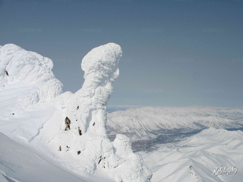 1-ый экстаз, а за ним сразу и 2-ой. Раньше ты наблюдал эту красоту с высоты птичьего полета, а теперь стоишь на заснеженной сопке, где-то на краю мира, над тобой синее небо и яркое солнце, а в глазах слезы радости. Никак не можешь надышаться. Единственное доказательство того, что ты не спишь это страх. Солнце и ветер за несколько бесснежных дней, превратили снег на вершине сопки в лед. Борд в руках и лед под ботинками. Любое резкое движение, или порыв ветра может превратить тебя из сноубордиета думающего - стоящего, в сноубордиста орущего - скользящего. Ягодицы, в предчувствии того, что спуск может быть осуществлен не на доске, как было изначально запланировано, а на них, предательски сжались:)