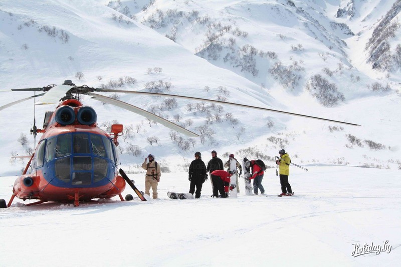 Раскручивая лопасти, вертолет отмахивался от зловонного дыма, а мы закидывали в него свои сноуборды. Взлетев, Андрей решил облететь по кругу, и показать нам вулкан во всей его красе. Все прилипли к иллюминаторам, кто с камерой, кто так просто. Но вдруг что-то случилось, изменился шум двигателя. Я перестал под собой чувствовать скамейку. Мы падали. Время шло, а падение продолжалось, секунда казалась вечностью. В этот момент было слышно как у всех на спине и ниже шевелились волосы. Перед глазами пролетела целая жизнь. И когда я уже готов был встретить Господа Бога, нас вдавило в скамейки и вертолет начал набирать высоту. Выдох. Ответом на гвалт вопросов, типа «Че за фигня», была очаровательная улыбка пилота. За целый день им стало скучно, и этот маневр был выполнен для того, чтоб развлечься и поднять уровень адреналина в нашей крови.