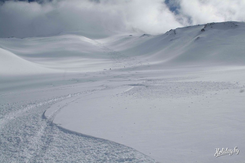 Встегиваемся. Траверс вдоль склона заставляет вспомнить, сколько у тебя зубов и как важны для улыбки 32 жемчужины. Краткий инструктаж. Лавинно опасности нет. Вперед! А точнее вниз! Первый наш склон весь усеян ледяными досками (выступающими пластами плотного снега), которые на первый взгляд должны быть совсем не ледяными. Они заставляют подпрыгивать и падать, совершая на вылете причудливые фигуры, до этого момента на которые, как тебе казалось, ты был не способен. Подъем, разгон, еще одна доска, прыжок, теперь весь мир перевернулся, и где-то под ногами глубокое небо. По сторонам слышны радостные возгласы товарищей, «хоть им понравилось!!!». И эта мысль ударом о склон загоняется глубже в мозг. За первый спуск шлем оправдывает себя раза три, защитные шорты пять раз.