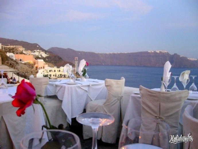 Сама по себе эта страна располагает к романтичному отдыху. Если с возлюбленным вы решили купить тур в Грецию, учтите, что на острове Санторини расположился один из красивейших ресторанов с видом на море. Безусловно, высшим стандартам соответствует и сам отель. Да и ресторан стоит отметить не только благодаря его, исключительно удобному для осмотр окружающих красот, расположению, но и благодаря чудесным фирменным блюдам. Кухня Греции - это действительно полезная кухня, приготовленная с помощью первосортных ингредиентов, но при том, насыщенная вкусом. Этот ресторан будто создан для романтиков.